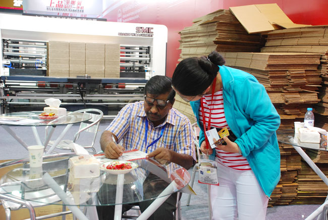 2015上海国际瓦楞展第二日,上品金刚翼展位延续上一天的火爆。